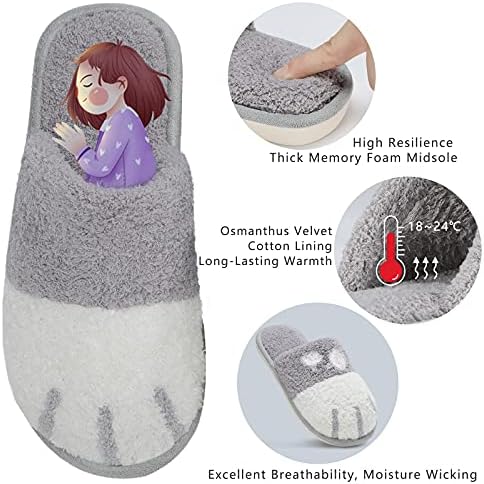 SINNO Cute Animal Slippers for Women Indoor Outdoor Memory Foam House Slipper Soft Warm Cozy Fuzzy Bedroom Non-Slip Shoes Christmas Gift ladies