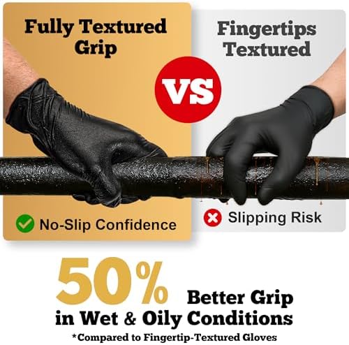 TitanFlex Durable Black Disposable Nitrile Gloves, 100 Pack, 6 Mil, Full Texture, Powder Free, Latex Free, Aseptic