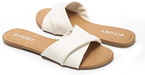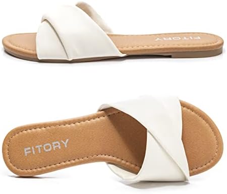 FITORY Women's Flat Sandals Fashion Slides With Soft Leather Slippers for Summer Size 6-11
