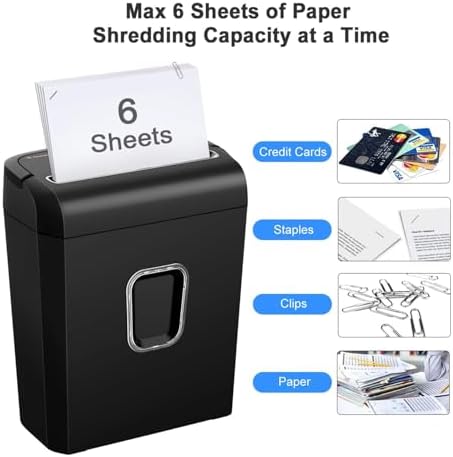 Bonsaii 6-Sheet Micro-Cut Shredder, P-4 High Security, Shreds Credit Cards\/Staples\/Clips, 3.4 Gal Transparent Window Bin, Black