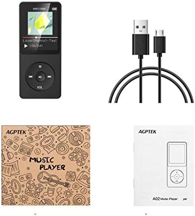 AGPTEK A02S 16GB MP3 Player, 70 Hours Playback Lossless Sound Music Player, Supports up to 128GB, Black
