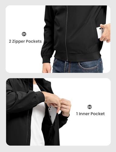 Rdruko Men's Lightweight Jackets Casual Fall Stylish Windbreaker Light Dress Zip Up Coat with 3 Pockets