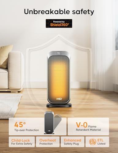 Dreo Space 加热器,1500W 快速加热便携式加热器,适用于室内使用,8 个安全保护办公桌办公室卧室,70° 振荡,静音电动 PTC 陶瓷带遥控器,12小时定时器