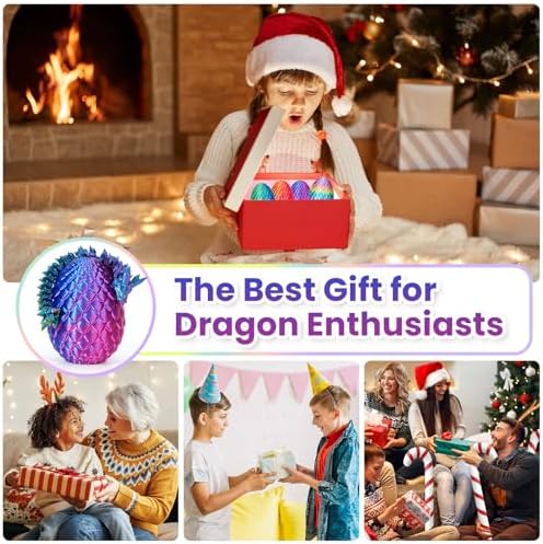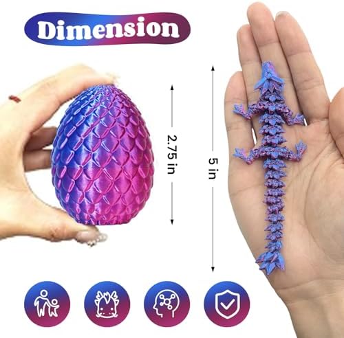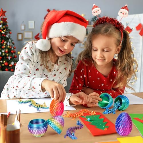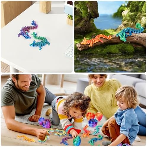 TBOLINE 4PCS 3D Printed Dragon Egg, Articulated Crystal Animals Fidget Toy Kid, Small 3D Printer Dinosaur Dino Eggs Toy Easter Gifts for Kids Boy Girls (4-Piece-C)