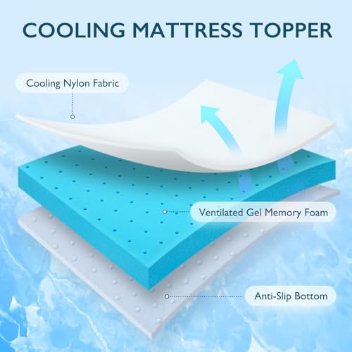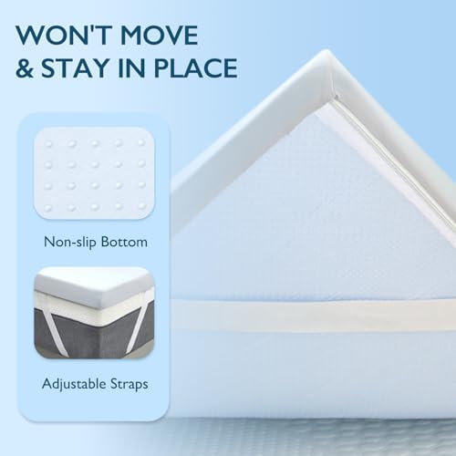3 Inch Gel Memory Foam Cooling Mattress Topper King Size with Cool-Touch Silky Cover for Cool Sleep & Pressure Relief, Non-Slip Adjustable Straps & Removable Cover, CertiPUR-US & Oeko-Tex
