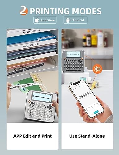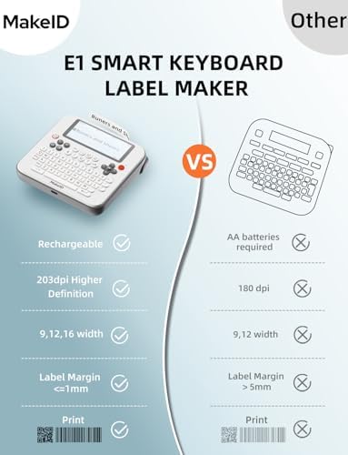 Makeid E1 Label Maker - Bluetooth Rechargeable Label Maker Machine - QWERTY Keyboard Labeler, 3.4" Backlighting LCD Screen - Prints 9~16mm Label - Home and Office Organization