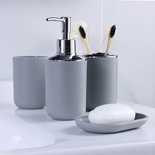 IMAVO Bathroom Accessories Set,Grey Bathroom Set,7 Pieces Bathroom Accessory Set,Tray,Toilet Brush,Trash Can for Bathroom Décor and Housewarming Gifts
