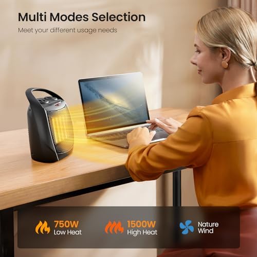 Kismile Small Electric Space Heater Ceramic Space Heater,Portable Heater Fan for Office with Adjustable Thermostat and Overheat Protection ETL Listed for Kitchen, 750W\/1500W(Black)
