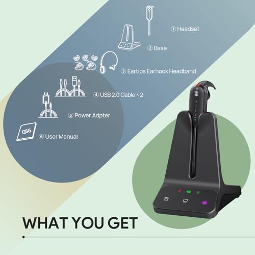 Yealink DECT Wireless Headset WH63 E2,Teams Certified,Single Ear(Mono) Office Headset for Desk Phone and Computer Softphone,Noise Cancelling Mic, 607Ft Range,3 Wearing Styles