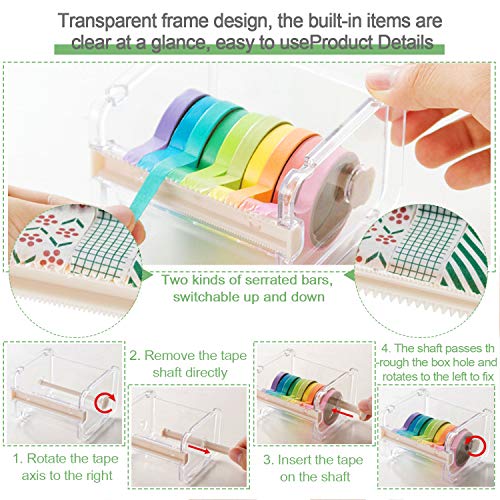 Package Contents: You will get 2 boxes of solid color washi tape (1 box of green tone and 1 box of pink tone) and washi tape cutter. The tape set is more convenient to organize and cut the tape. Convenient Combination: The combination of masking paper tapes and tapes holder will make your use more convenient and faster, and the tape dispenser can also make the tape cut more perfect while no harm to fingers, which greatly improves your using experience. Excellent Sticky and Removable: These masking tapes are made of durable paper, soft adhesive, and they can stick firmly to most clean surfaces and can be easily removed without any sticky residue. Besides, these decorative tapes material can be written with pen or marker. Easy to Carry: Both of the masking tapes and roll tape cutter holder storage are so small and light that suitable for offices and rooms. Paper tape dispensers can hold 5 rolls of 15mm width tape. Wide Application: The washi tapes set can be used to label, divide, decorate or stick everything you want in classroom, office, laboratory and at home. These scrapbooking tapes are also good for kids, teachers, students and painters, etc.