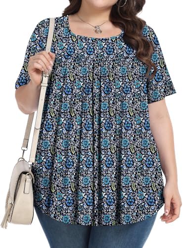 PEVRL Plus Size Tops for Women Summer 2025 Short Sleeve Shirts Tunics Square Neck Casual Loose Blouses 1X-5X