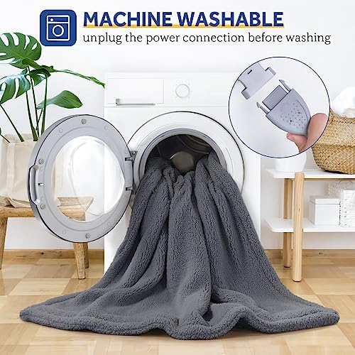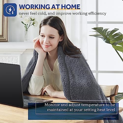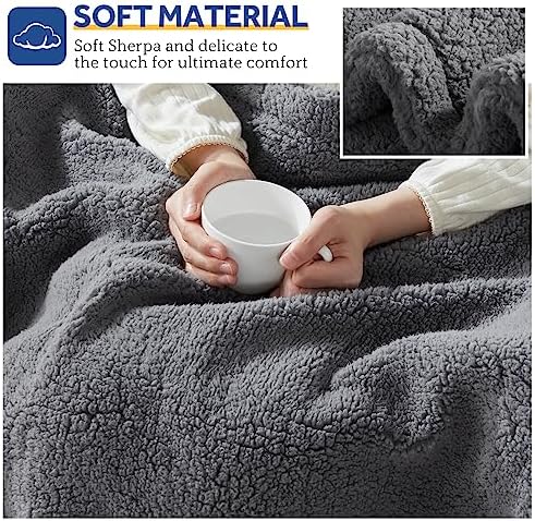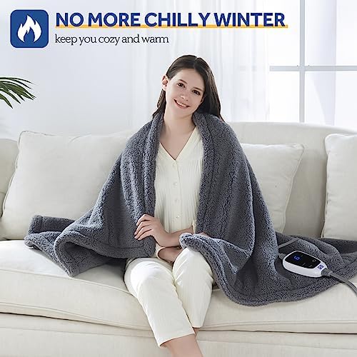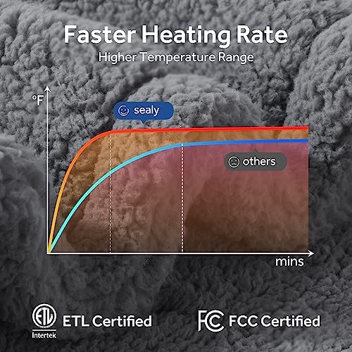 SEALY Electric Blanket Heated Throw 50"x60" Soft Double Sherpa Super Cozy with 6 Fast Heating Levels & 2-10 Hours Auto-Off, Over-Heat Protection, Machine Washable, Dark Grey