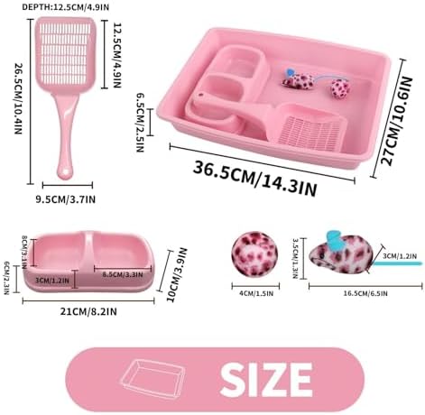 PAWISE Cat Litter Box Set, Small Kitten Starter Kit, Includes Litter Box, Litter Scoop, Double Dish Feeding Bowl, Cat Mouse Toy, Kitty Ball Toy, Pink