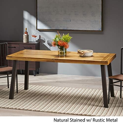 Christopher Knight Home Della Acacia wooden dining table, natural dyed rustic metal, 8.9 cm x 75 cm x 74.9 cm, brown, gray