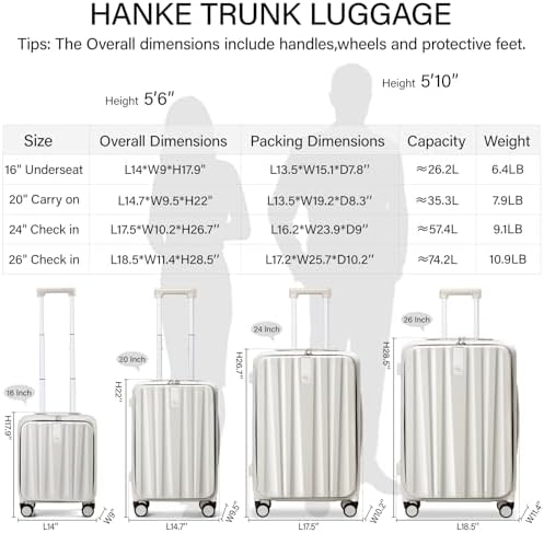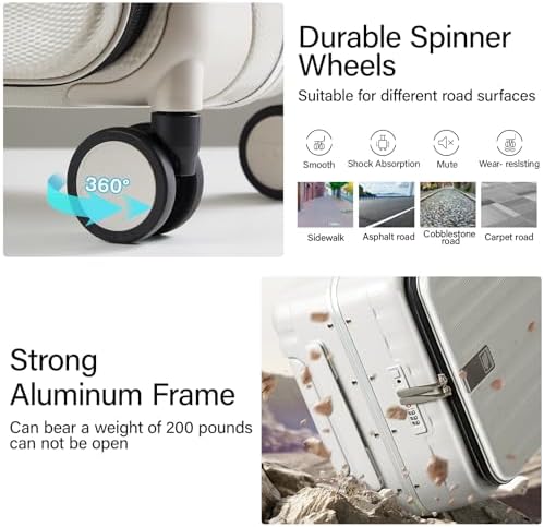 Hanke 20 Inch Carry On Luggage with Wheels PC Hard Shell Suitcase Top Opening Aluminum Frame Travel Luggage Suitcases for Woman Men Gifts.(Ivory White)