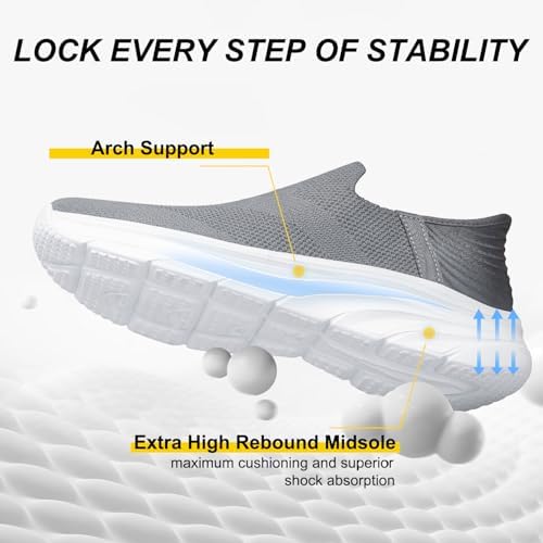 FOOT HUGGING KNITED DESIGN : These slip on walking shoes for women feature a foot-hugging knit upper and a female-friendly fit. Every step is light and breathable. You can choose to wear socks or not. SHOCK ABSORPTION AIR CUSHION: The sole of this womens hands free walking shoe features cushioning and shock absorption, reducing the burden on feet and knees during walking. It provides excellent cushioning and is perfect for pregnant women and busy moms for activities. SOFT & COMFORTABLE SOCKLINER: Our slip on shoes are made of high density foam and low arch support, designed to provide support and comfort. Doesn't matter what you've got scheduled today. You'll get there in total comfort. OCCASIONS: Solving problems such as bending difficulties, mobility problems, back pain, knee pain, pregnancy, arthritis, etc., we focus on convenience to go out, but it involves more such as: disability, aging, pregnancy, cleaning, travel, etc.Whether you're a nurse, a busy parent, recovering from surgery, hands-free shoes will be the nice option.