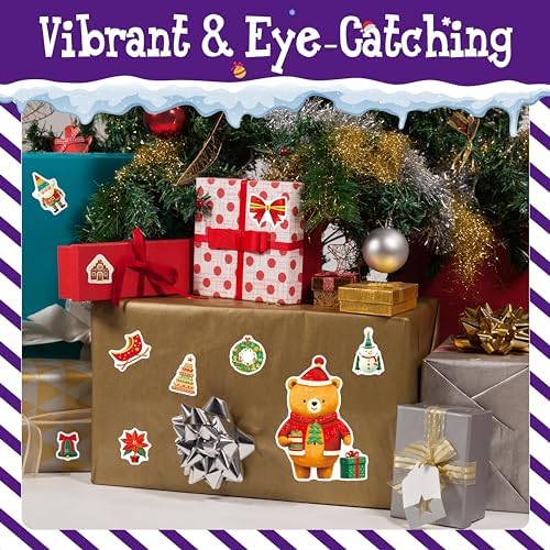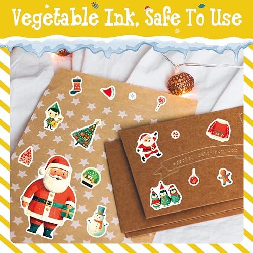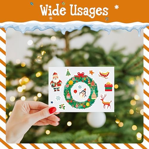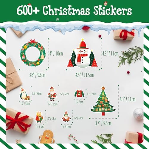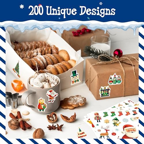 600+ PCS Christmas Stickers, 200 Unique Designs Cute Santa Claus\/Tree Self-Adhesive Merry Decoration for Kids Funny Holiday Favors Envelopes Gifts Tags Crafts (15 Sheets)