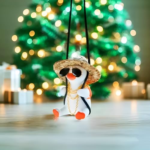 Qiwen Funny Swinging Duck Car Mirror Hanging Ornament - Cool Automotive Rearview Mirror Accessories for Men Women Teens, Cute Truck Car Pendant Charm Decor (Cool A)