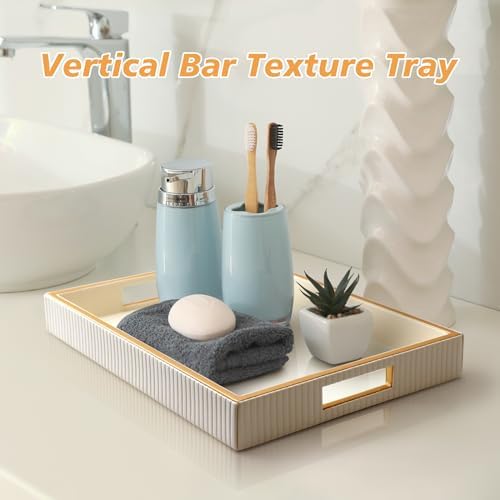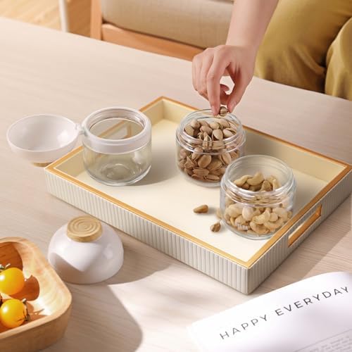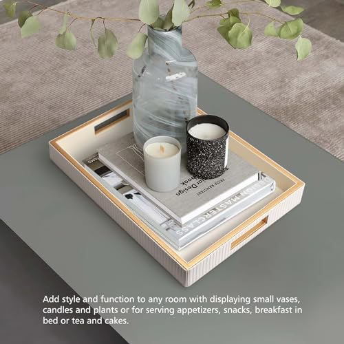 SANZIE Leather Tray Desktop Storage Organizer Premium Serving Tray Decorative Tray Valet Tray for Sundries Cosmetics Phone Wallet Cutlery (White Platter)