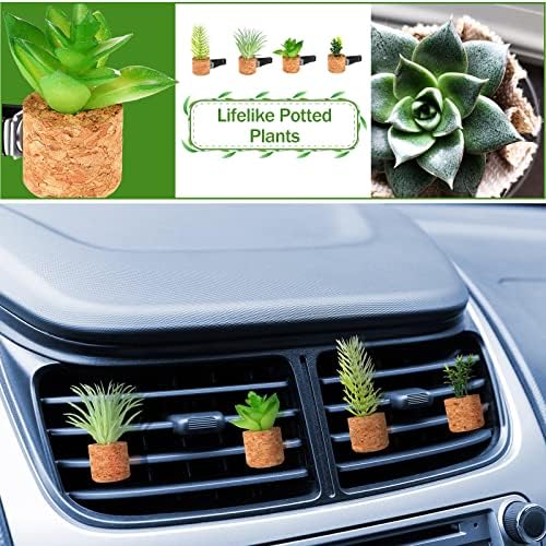 Tallew 4 Pcs Succulent Air Vent Clip Car Accessories Cute Plant Green Car Decoration Gift Air Freshener for Women Girl Man Mini Artificial Plant for Interior Clips Diffuser
