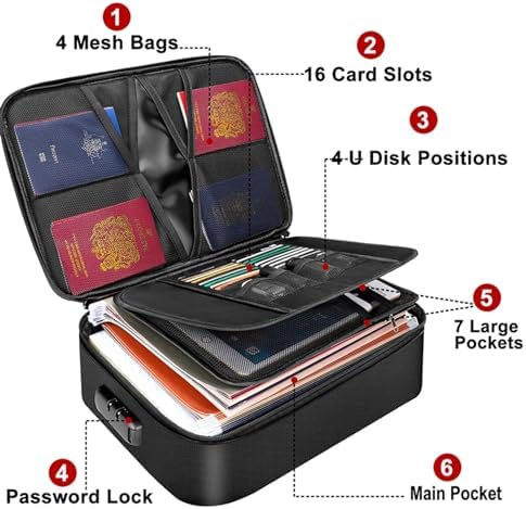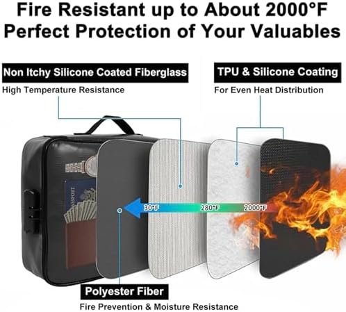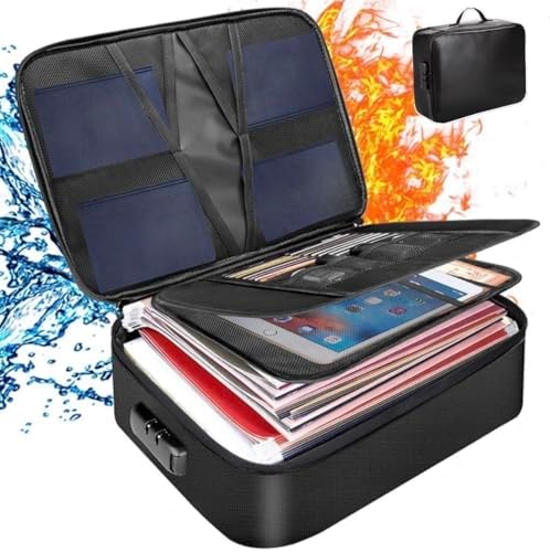 Fireproof Document Organizer, Large Size with 2000F Heat Insulated Money Bag, Document Safe, Office Briefcase, Black
