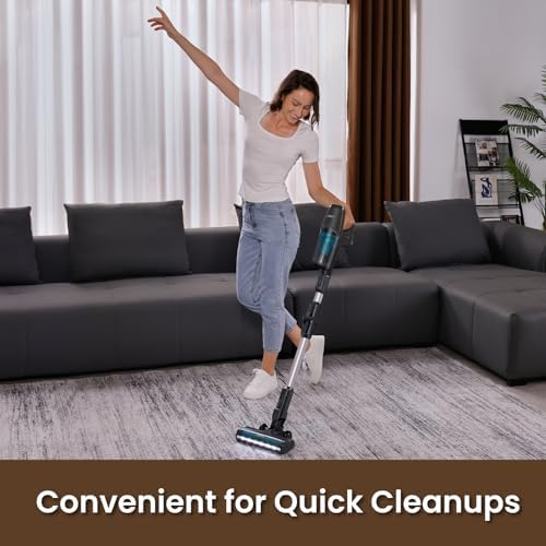 Cordless Vacuum Cleaners for Home, Cordless Stick Vacuum with Bendable Wand, Flexible Brush and Ultra Lightweight, Up to 45mins Detachable Battery, Quick Clean-Up for Hard Floors, Carpets, Grey