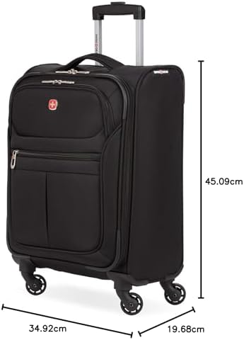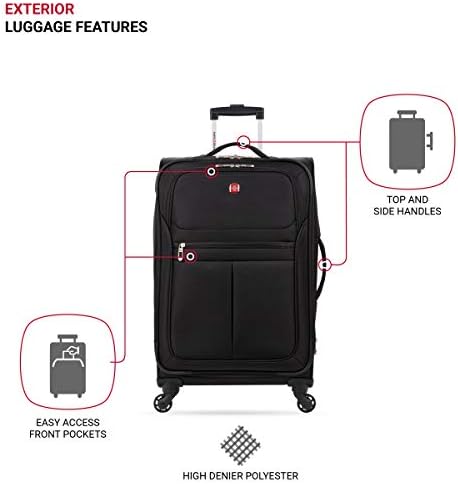 SwissGear 4010 Softside Luggage with Spinner Wheels, Black, Checked-Medium 23-Inch