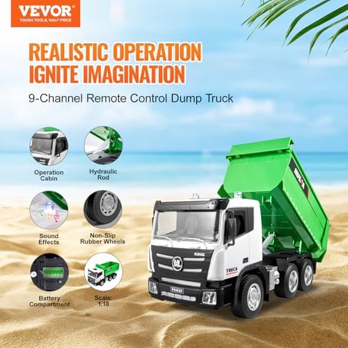 VEVOR RC Dump Truck Toy for Kids, 226 ft\/min Fast Speed, 9-Channel 1:18 Scale, Remote Control Dump Construction Vehicle with Lights & 2 Batteries Birthday Xmas Gifts Ideas for Boys Age 8 9 10 &am