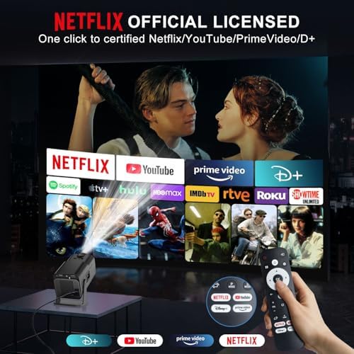 [ 2025 Netflix Licensed ] 4K Projector with Wifi Bluetooth, Android 13 Smart Projector w Built-in Netflix\/YouTube\/PrimeVideo\/D+, Auto Keystone, 1080P Native Mini Portable Projector for Outdoor Movi