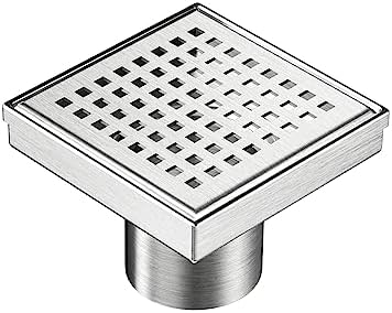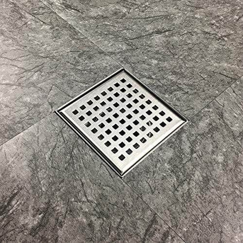 Neodrain 4-Inch Square Shower Drain with Removable Quadrato Pattern Grate, Brushed 304 Stainless Steel Square Drain for Bathroom with Hair Strainer,CUPC Certified