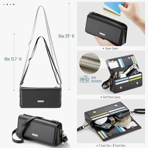 HERCOO Small Crossbody Phone Purse, Women's RFID Crossbody Wallet Wristlet Purse with Phone Pocket