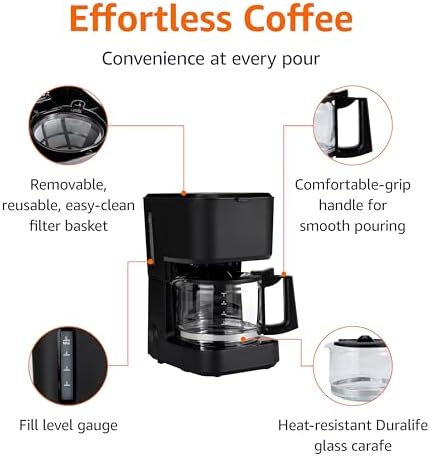 Amazon Basics 5-cup coffee machine with reusable filter and automatic shut-off function, black