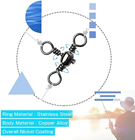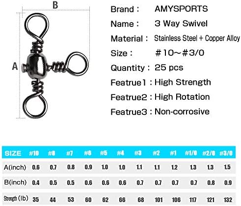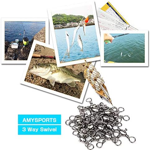 AMYSPORTS Stainless 3way Swivel Fishing crossline swivels 3 Way rigs Saltwater Freshwater Drifting trolling Fishing Tackle Connector for Spoons Minnow baits