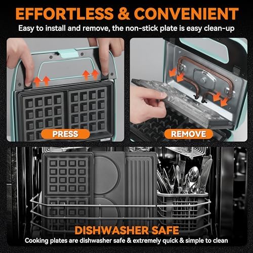 Baker\u2019s Friend 3 in 1 Mini Waffle Maker with Removable Plates, Mini Pancake Maker, Grilled Cheese Maker, Breakfast Sandwich Maker Press, Mini Indoor Grill, Belgian Waffle Maker, Aqua