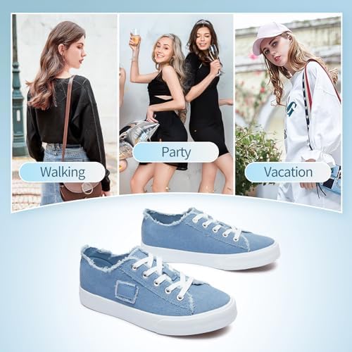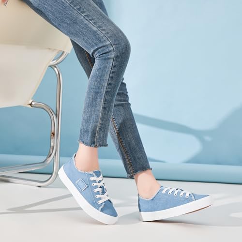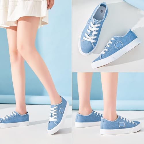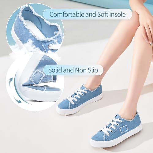 BENPAO Women's White Canvas Shoes Black Canvas Fashion Sneakers for Women Comfortable Casual Tennis Shoes Low Top Walking Shoes