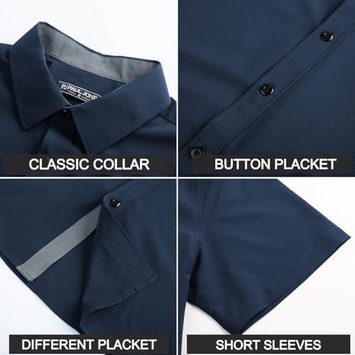 PJ PAUL JONES men's button up short sleeved shirt casual wrinkle free formal shirt summer beach