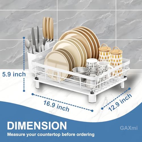 GAXmi Dish Drying Rack Over The Sink Dish Drainer with Drainboard Utensil Holder, 1-Tier White