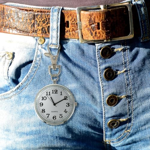 iplusmile Clip on Pocket Watch Open Face Watch with Key Buckle Portable Unisex Digital Watch for Students Men Doctor Nurses Women