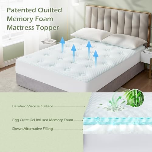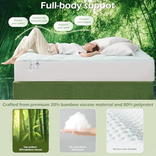Hansleep Queen Mattress Topper Viscose Derived from Bamboo, Memory Foam Pillow Top Mattress Topper Queen with Deep Pocket, Breathable Mattress Pad for Back Pain Relief, 60" x80", White