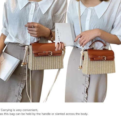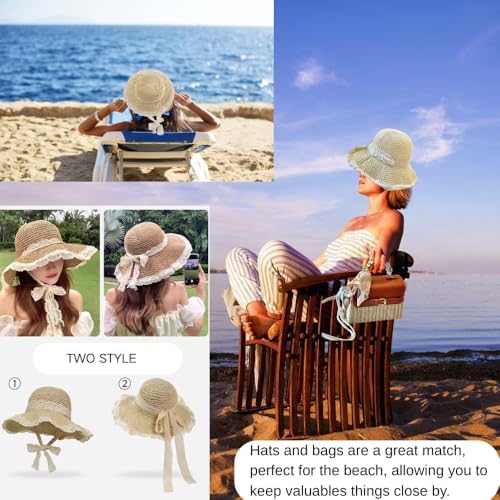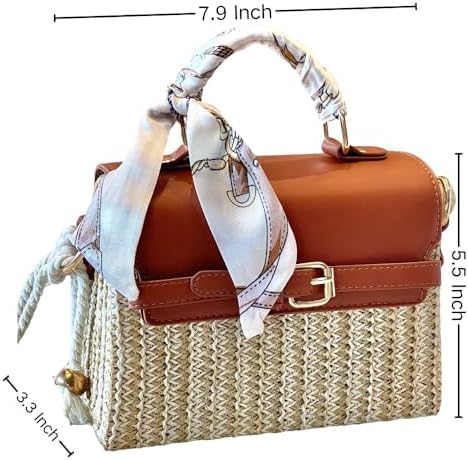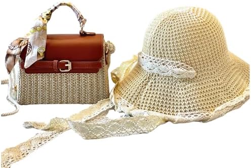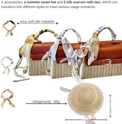 Kefeier Top Handle Straw Crossbody Bags for Women, Summer Straw Purses and Handbags Shoulder Clutch Beach Bag with 1 sun hat, 3 Color Scarf Handle, Rope Strap, Natural