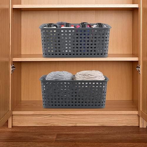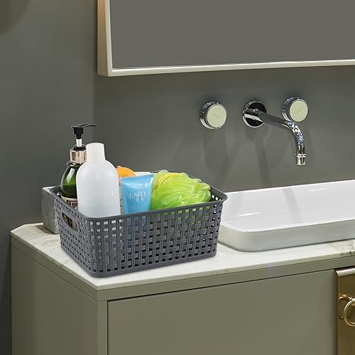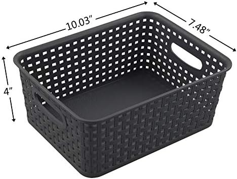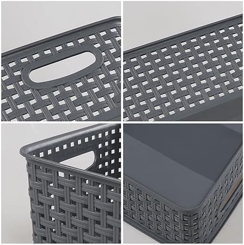 CadineUS 6-Pack Plastic Woven Storage Baskets, Small Baskets Dark grey
