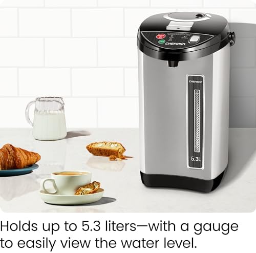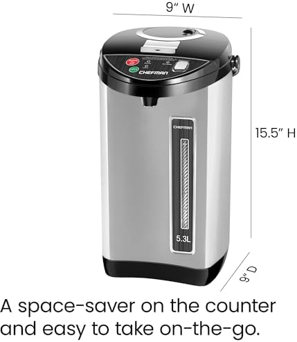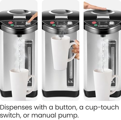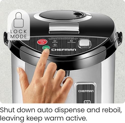 Chefman Electric Hot Water Pot Urn w\/Auto & Manual Dispense Buttons, Safety Lock, Instant Heating for Coffee & Tea, Auto-Shutoff & Boil Dry Protection, Insulated Stainless Steel, 3.6L\/3.