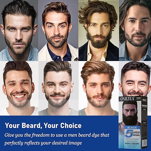 Men's Long-Lasting Black Hair Dye & Root Touch Up for Gray Coverage - 5 Minute Natural Beard & Mustache Coloring Shampoo 3-in-1