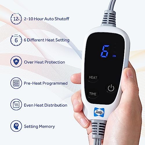 Sealy Electric Blanket Heated Throw, Soft Cozy Ribbed Flannel to Sherpa Reversible Safe Heating with 6 Heat Settings & 2-10 Hours Auto-Off Over-Heat Protection, Machine Washable, 50"x60" B