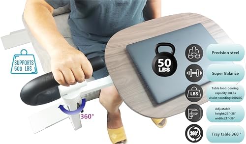 Tlongxia Auxiliary Standing Tray Table, 360 Degree and Height Adjustable Rotating TV and Laptop Table, Ergonomic Auxiliary Safety Standing Handle, aid Standing Independent Living