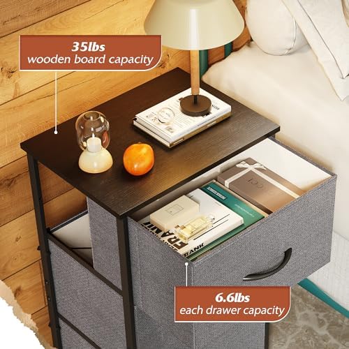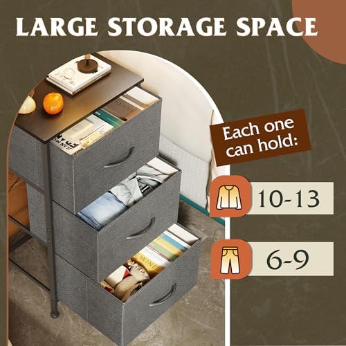 WLIVE Dresser with 3 Drawers, Fabric Nightstand, Organizer Unit, Storage Dresser for Bedroom, Hallway, Entryway, Closets, Sturdy Steel Frame, Wood Top, Easy Pull Handle, Dark Grey