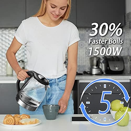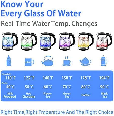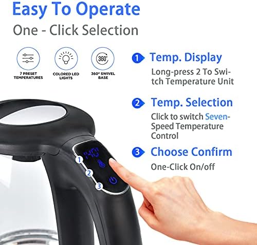 ShanSon 1.7L Electric Glass Kettle 1500W Temperature Control Fast Water Boiler BPA Free Auto Shut-off Protection Electric Teapot with Led Touch Screen and Two-year Quality Guarantee