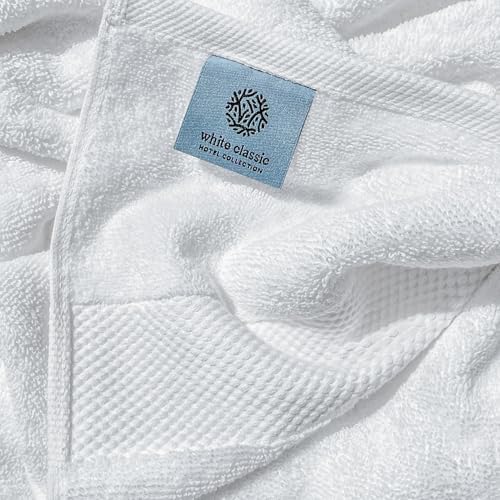 White Classic Luxury Cotton Washcloths 13x13 Inch - 650 GSM Turkish Cotton Hotel, Spa, Bathroom Face Towel 12 Pack