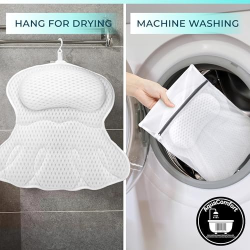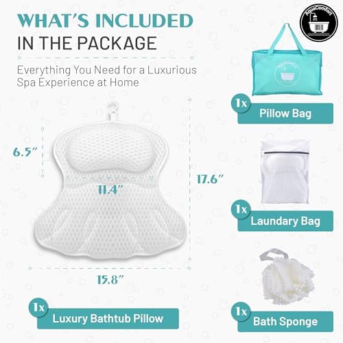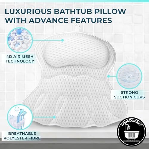 Bathtub Pillow, Luxury Bath Pillows for tub Neck, Back and Shoulder Support, Thick Padded, Ergonomic Bath Tub Pillow with 4D Air Mesh Cushions, Strong Suction Cups, Relaxing Bath Accessories Spa Gifts
