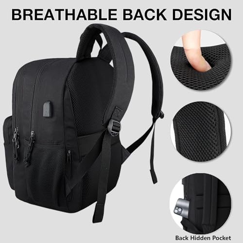 KEOFID Travel backpack for Men and Women, Anti Theft Laptop Backpack with USB Charging Port for Work, Large Bag for College, BLACK BOOK BAG FOR BOYS, GILRS Backpack,Water Resistent(Black)